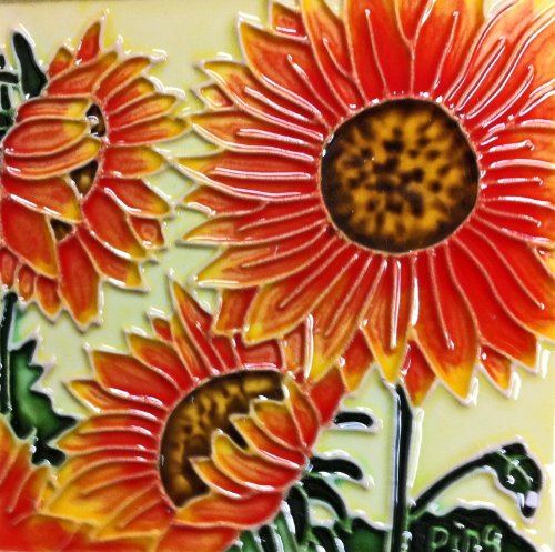 Continental Art Center SD-003 4 by 4-Inch Three Sunflowers Ceramic Art Tile