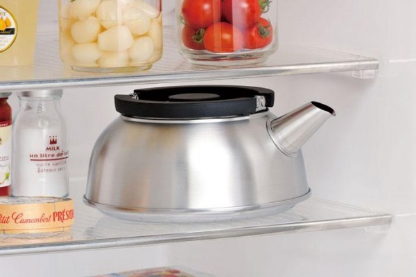 ハンドルを折りたためば高さ約105mmの薄型設計。冷蔵庫内の棚にスッキリ収納。