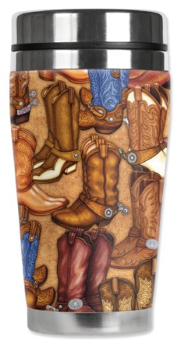 Mugzie Cowboy Boots Travel Mug with Insulated Wetsuit Cover, 16 oz, Tan
