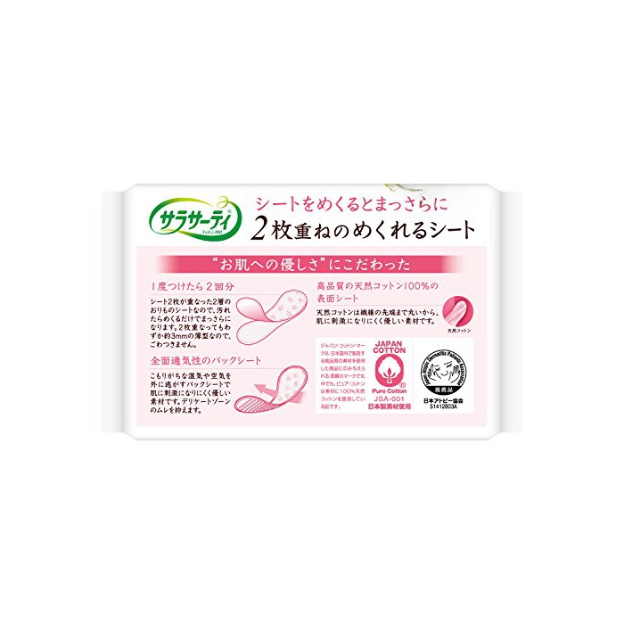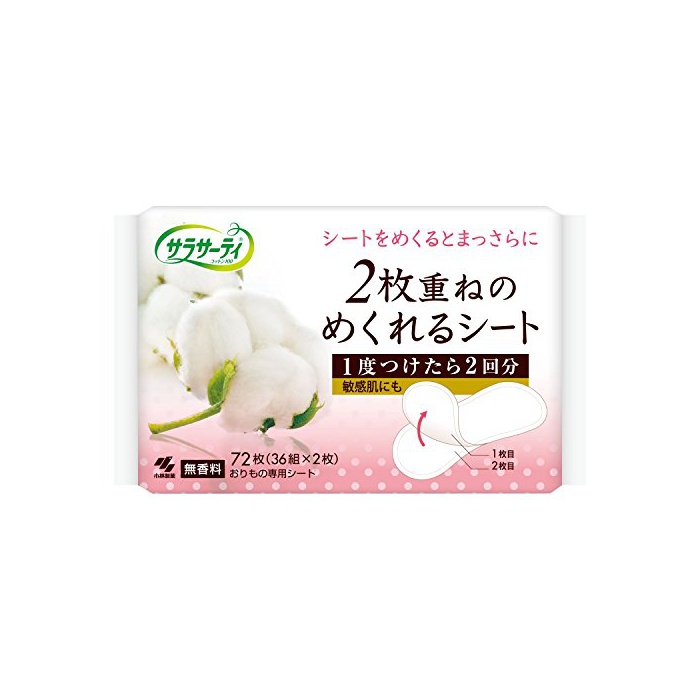 원본상품명: サラサ?ティ 2枚重ねのめくれるシ?ト おりものシ?ト 無香料 72枚(36組×2枚)