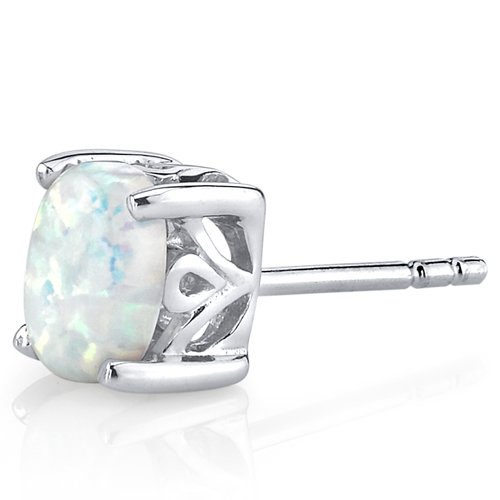Stones: 2 pieces Lab Created Opal, Oval Shape, 7x5 mm, 1.50 carats, multiple shimmering colors that shift with the light. Earrings: 2.30 grams, Pure Sterling Silver with .925 Stamp, Earrings feature exceptional Design, Craftsmanship and Rhodium finishing. Perfect gift for Mothers Day, Birthdays, Valentines Day, Graduation, Christmas or just about any other occasion. Money Back Guarantee. Includes a Signature Gift Box. Style SE8354Feature