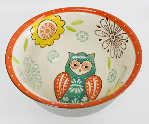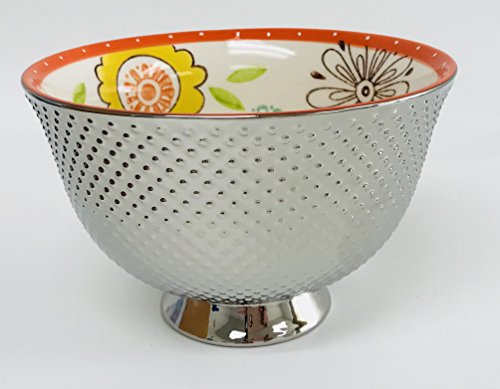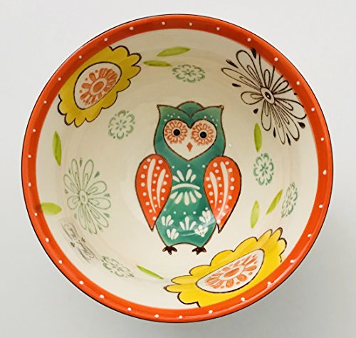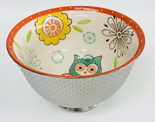 Green & Orange Decorative Owl & Flower Soup | Dessert Bowls | Outside of The Bowl Is Shiny Silver With Raised Dots | 6 inches x 3.75 inches