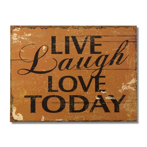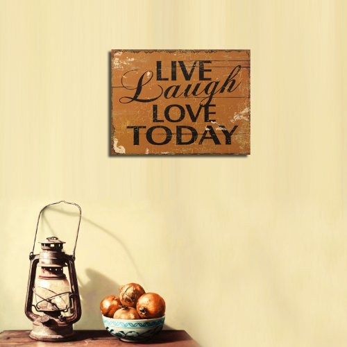 Adeco Decorative Wood Wall Hanging Sign Plaque "Live, Laugh, Love Today" Brown, Black Home Decor - 14.2x10.7 Inches
