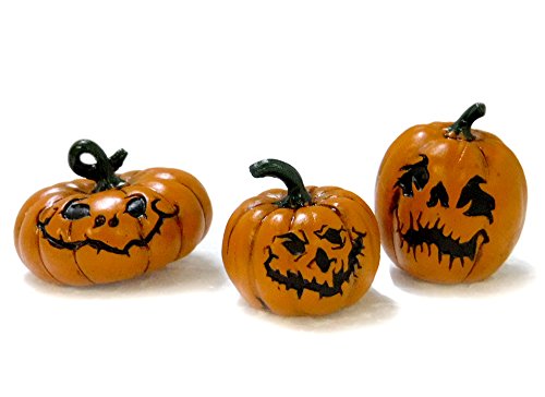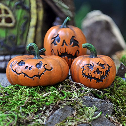 Fiddlehead Fairy Garden : Set of 3 Assorted Jack-O-Lanterns c/w pick