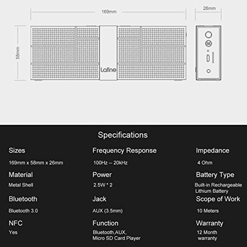 -. Feature : Powerful Performance - 2 x 2.5W high performance acoustic drivers. You will feel the bass and the treble with a stereo that really plays the beat / The artwork to adorn your life. F35 can interpret elegance from any angle and show your extraordinary taste. / Enjoying the convienence of Bluetooth:You can pick up a call and answer the call with Built-in Microphone, / Complete Compatibility: You Can Pair smartphones, tablets, laptops and more via Bluetooth (up to 10 meters / 33 feet) or NFC, or connect non-Bluetooth devices such as MP3 players with AUX cable. / Includes Micro USB Cable and AUX Cable; 12-Months Manufacturer's Warranty