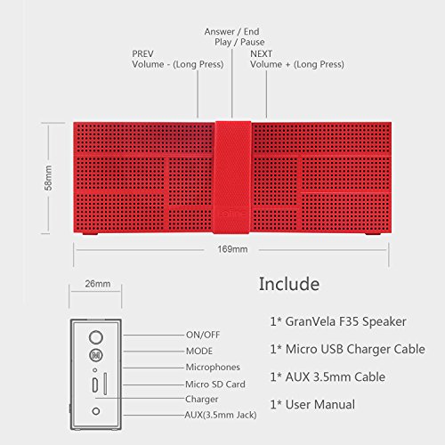 -. Title : GranVela® F35 Dual-Driver Portable Bluetooth Wireless Stereo Speaker with built-in Microphone Red Aluminum Shell & NFC Pairing, Micro SD MP3 Player,A2DP Profiling with Enhanced Bass