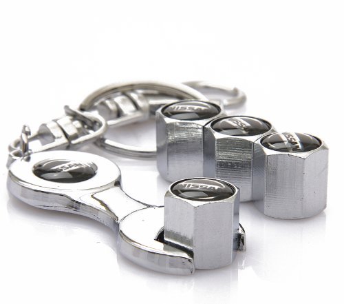 D&R® Wrench Keychain Chrome Tire Valve Stem Caps for Nissan