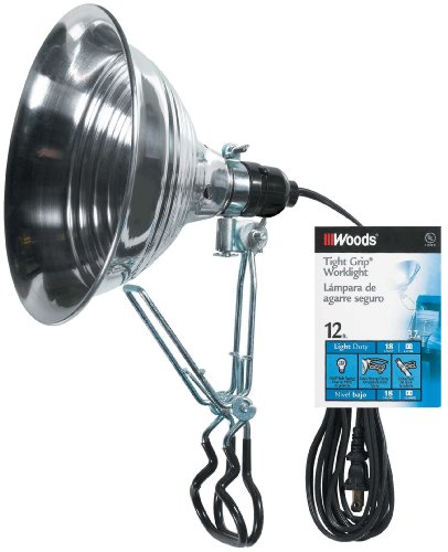 Woods 2839 18/2 Gauge SPT-2 Tight Grip 150-Watt Clamp Lamp with 8.5-Inch Reflector, 12-Foot