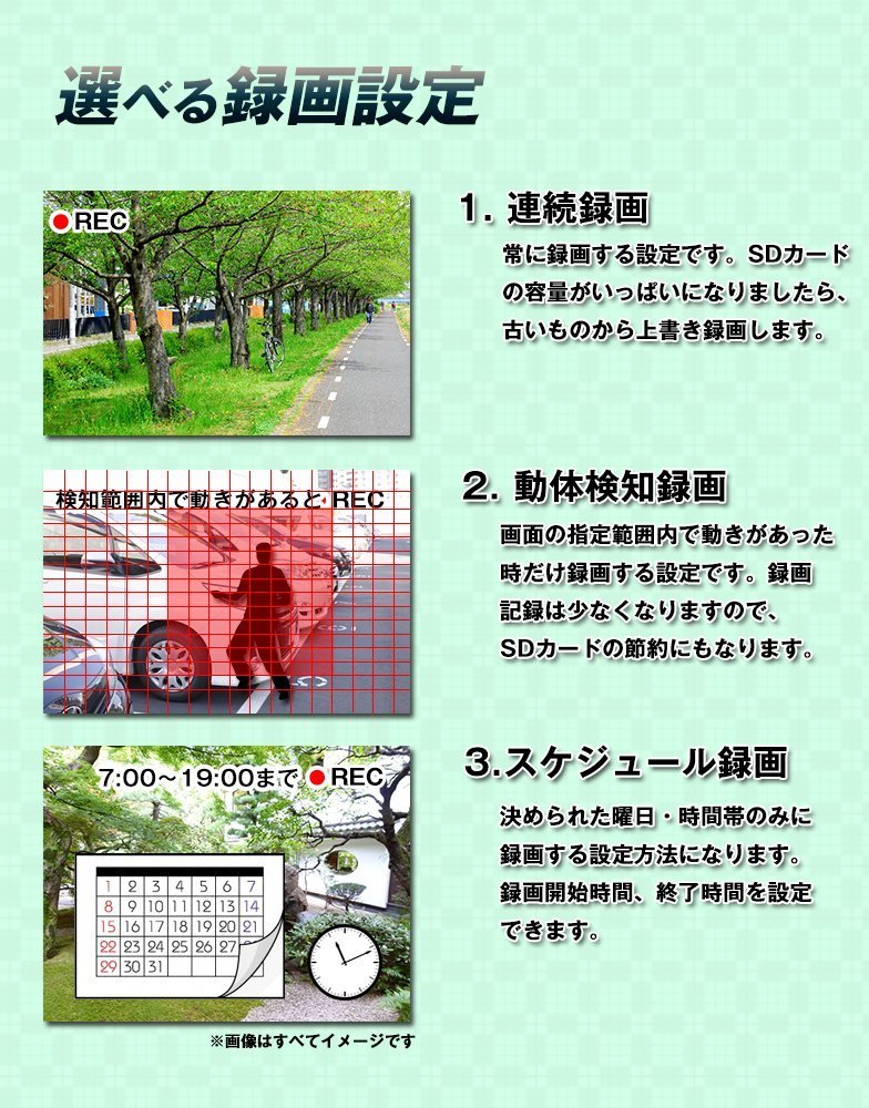 Recording type: Always supports recording, motion recording, schedule recording