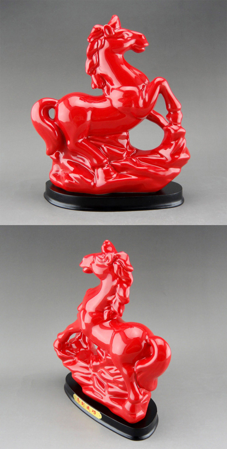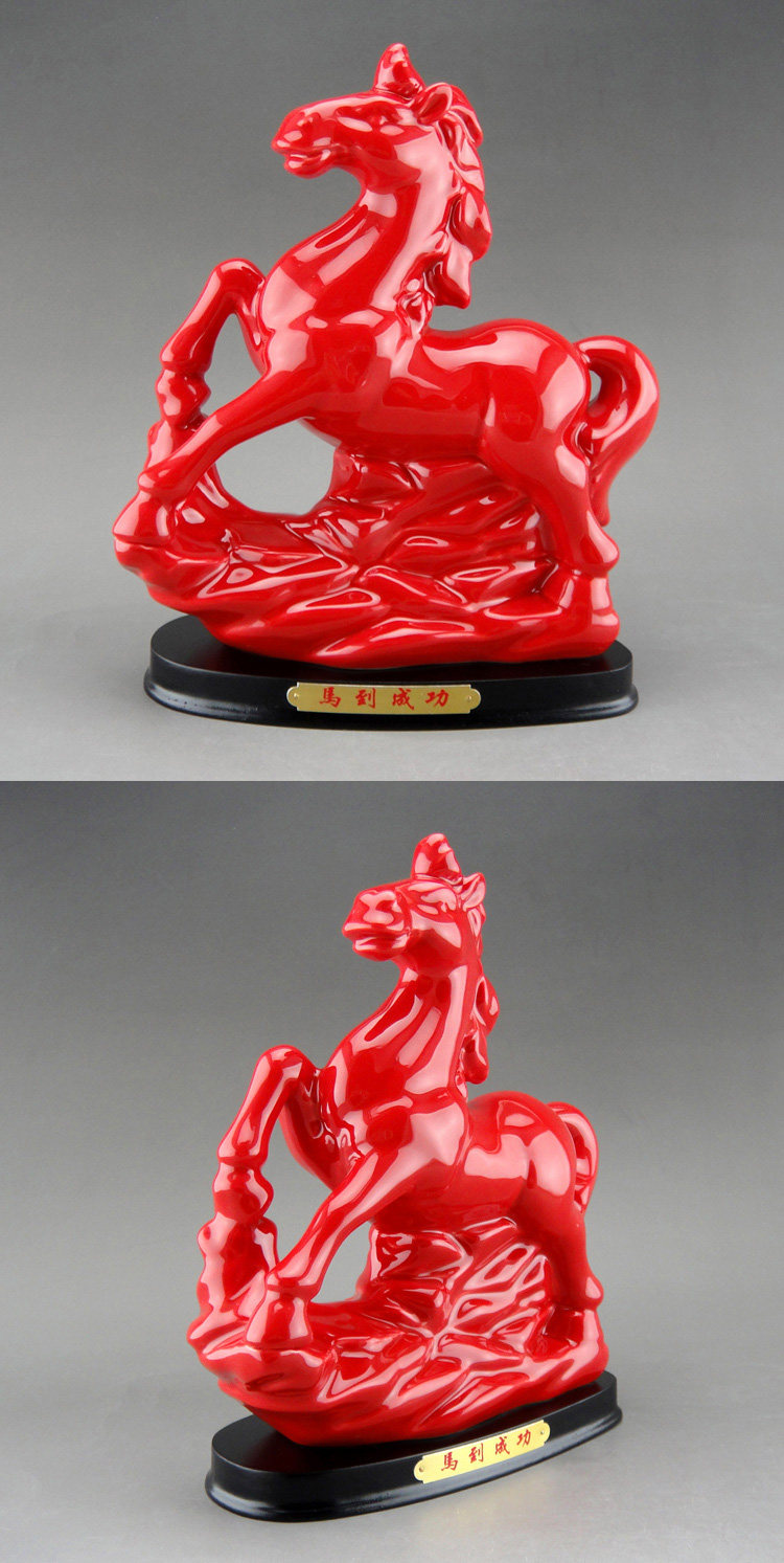 陶瓷马摆件马到成功招财风水办公室摆设红白瓷器十二生肖工艺礼品