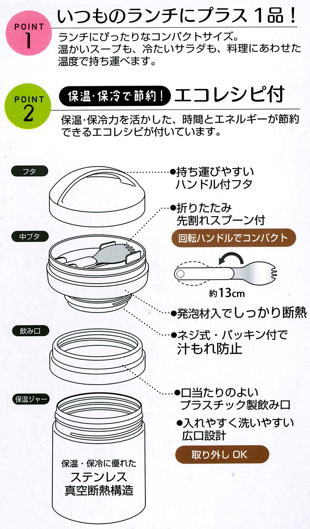 ● Enjoy warm dishes and cold salads, Insulated and cold delica pots