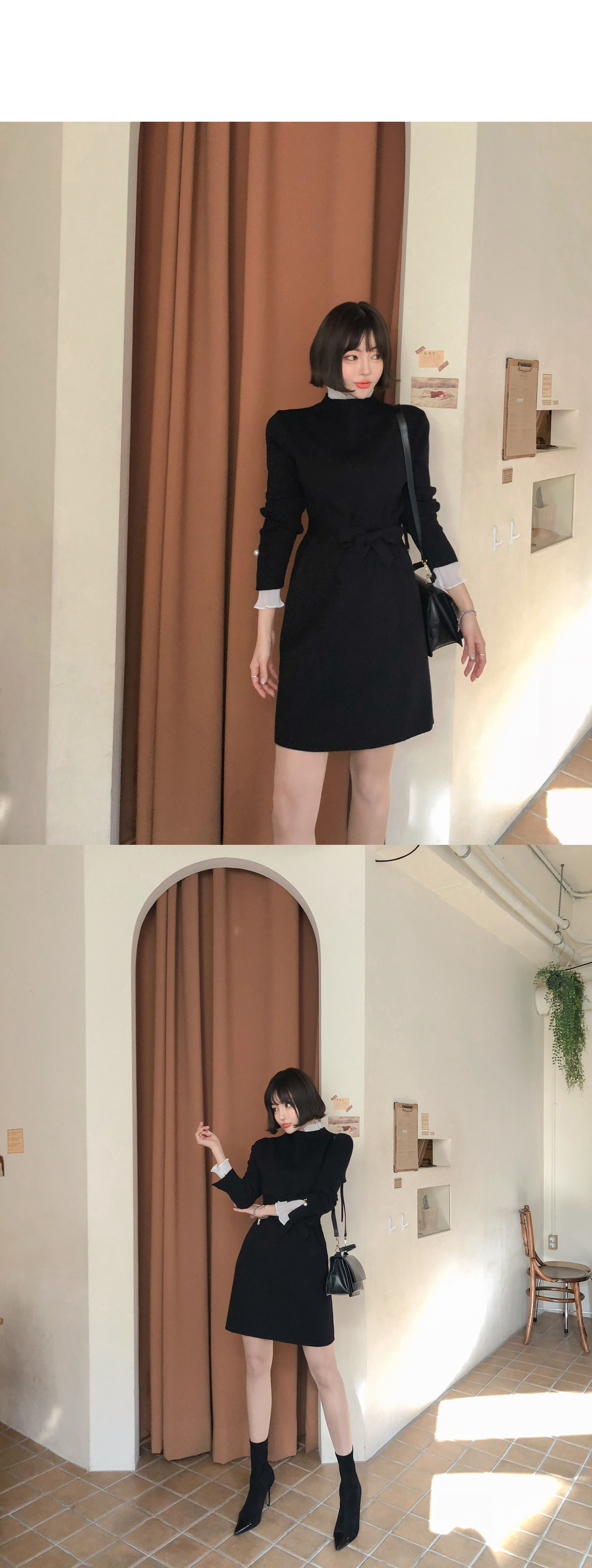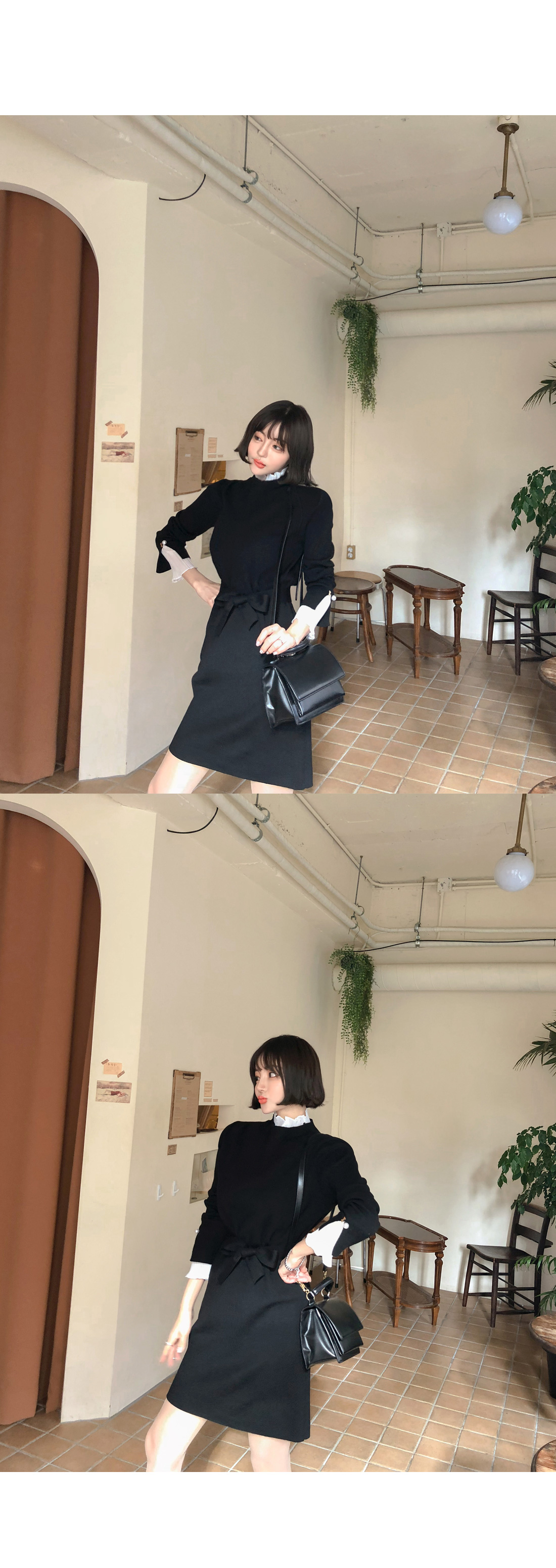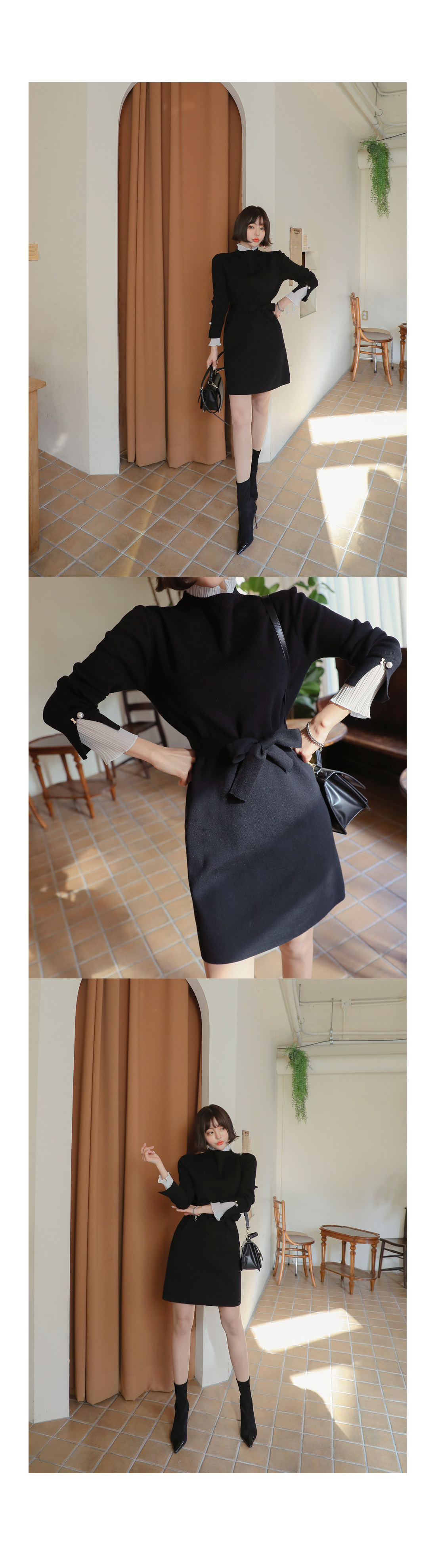네크 라인과 소매 밑단에 배색 프릴 디테일을 주어
