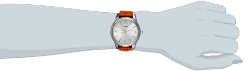 -. Feature : Timex Women's, with its undeniable reputation for reliability, offers this classic, round, easy-to-read design atop a vibrant croco-embossed band for a fresh take on a traditional timepiece. / Quartz movement with analog display / Protective mineral crystal dial window / Features include silver-tone brass case with sunray finish, silver-tone dial with partial Arabic numerals, orange genuine leather strap with croco grain pattern / Water resistant to 99 feet (30 M): withstands rain and splashes of water, but not showering or submersion