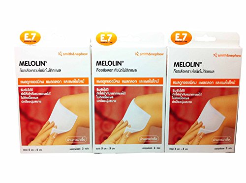 -. Binding : Health and Beauty -. Brand : Melolin -. EAN : 0801742066718 -. Feature : 3 packs of Melolin 5 x 5 cm Wound Dressing Pad (3pcs/pack) / low adherent pad medical proven, absorbent dressing pad which absorbs excess fluid away from the wound. This pads are comfortable and cushion the wound. / Apply this pad to the wound. The shiny film side goes directly onto the wound. / Store in a cool, dry place. / "free!! sticker Thai_product, souvenir from Thai_product.,High Quality & Services by Thai_product. " -. IsAdultProduct : 0 -. Label : Thailand -. Manufacturer : Thailand -. ProductGroup : Health and Beauty -. ProductTypeName : HEALTH_PERSONAL_CARE -. Publisher : Thailand -. Size : 5 X 5 cm -. Studio : Thailand -. Title : 3 Packs of Melolin 5 X 5 Cm Wound Dressing Pad (3pcs/pack) -. UPC : 801742066718
