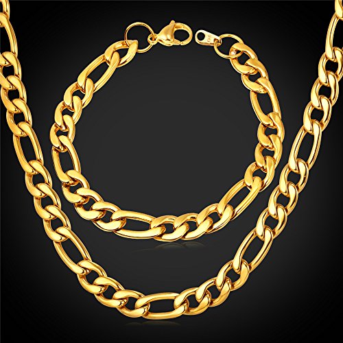 -. Feature : Thick wide chain: 9mm. / Classic imported style: figaro chain. / Nickel Free. / Fashion or Fine Jewelry: Fashion. Gift Wrapped: Come with U7 design gift box, choose fulfilled by Amazon, you'll get an extra black velvet pouch.