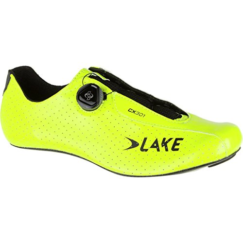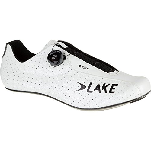Studio : Lake Publisher : Lake Binding : Apparel Product Description While many of us love the streamlined look of Lake's CX301 cycling shoes, not all of us can fit our feet comfortably into its narrow last. Those of us with wider feet can now breathe a sigh of relief with the availability of a wide version of the venerable CX301. Featuring 15mm of extra width across the ball of the foot compared to the standard version, this CX301 brings all the high-tech, lightweight features we loved in the original to a wider platform.As with its narrower counterpart, a single Boa dial adorns the side of each shoe, providing precise fit adjustments and on-the-fly utility for exceptional comfort while maintaining clean lines and that coveted minimalist style. Under that sleek exterior, Lake's CX/TX Race last offers a streamlined, glove-like fit that minimizes excess foot movement and prevents hot spots. Combined with a feathery light and stiff full carbon fiber sole, and you have a shoe that efficiently transfers every watt of power output into the pedals. 0