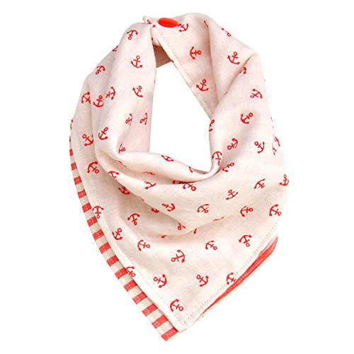 kishu baby Coral Nautical Bandana Drool Bib for Boys or Girls, Made In Usa From Premium Japanese Cotton Muslin, Adjustable With Snaps, Peach, One Size