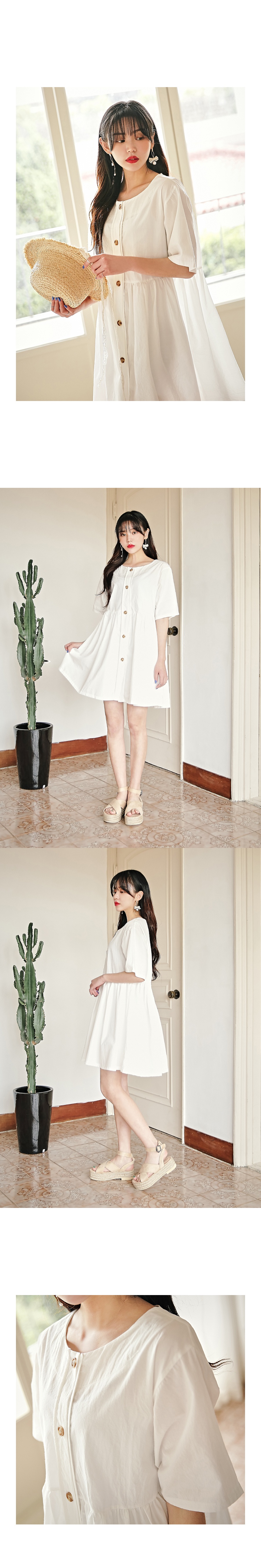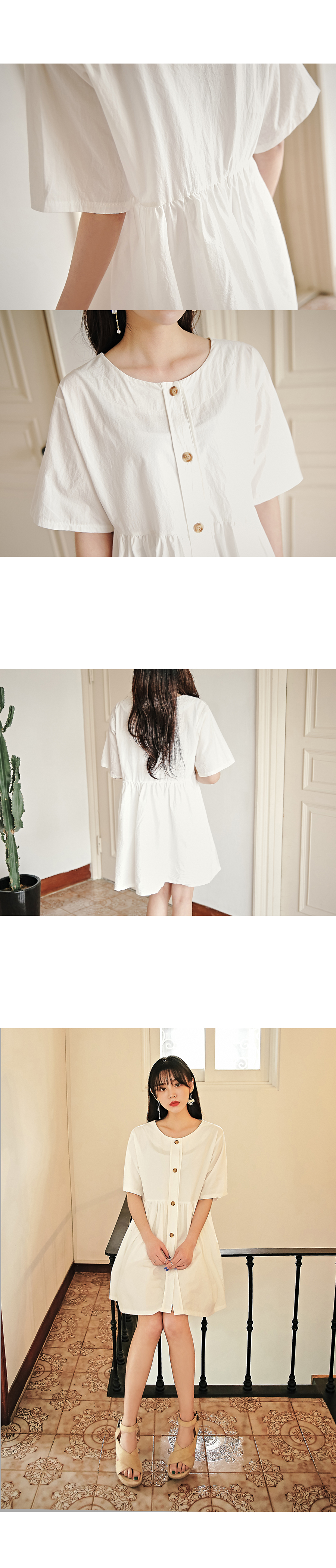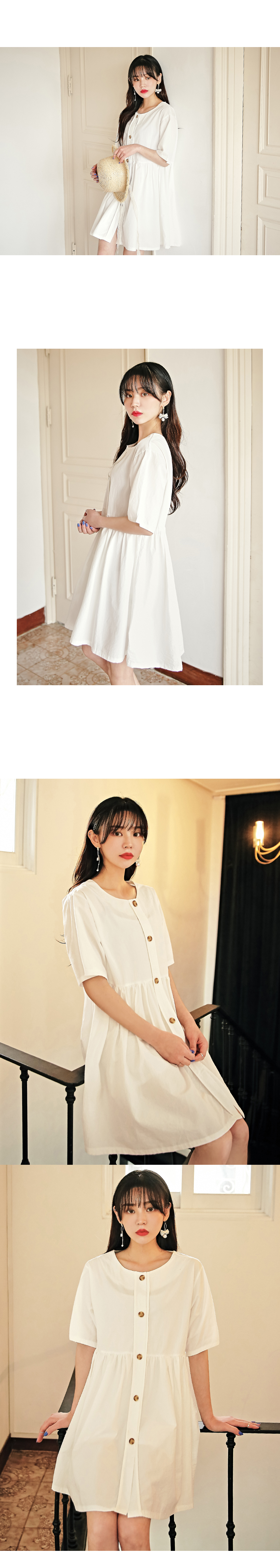 깔끔한 라운드 네크라인에 버튼 디테일이 더해