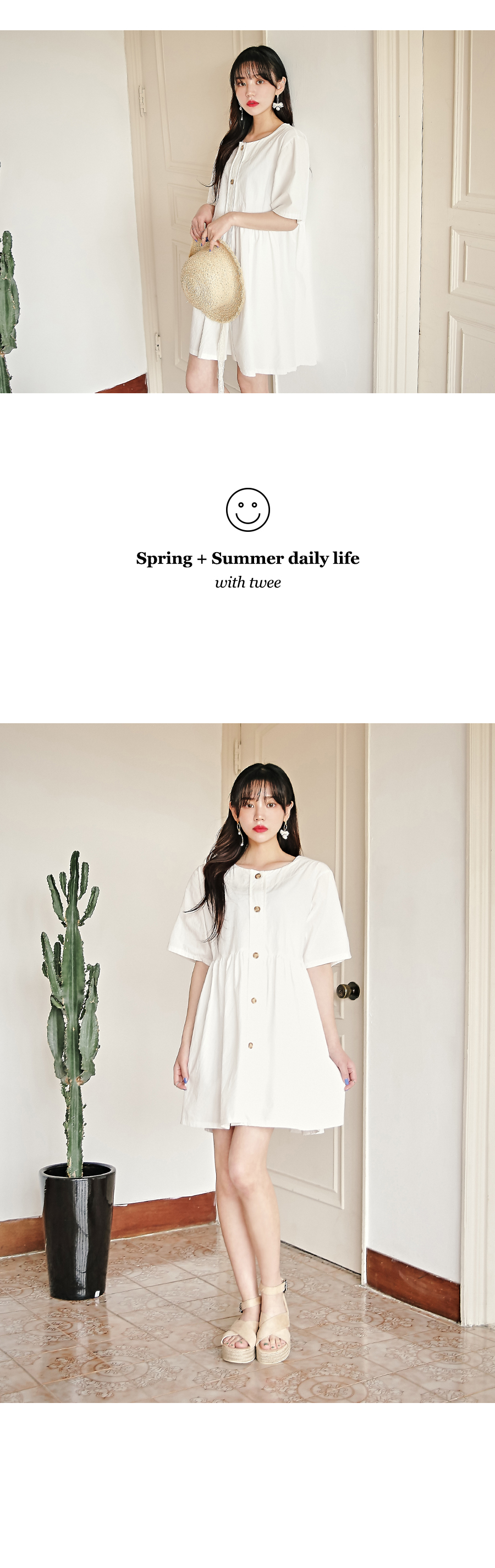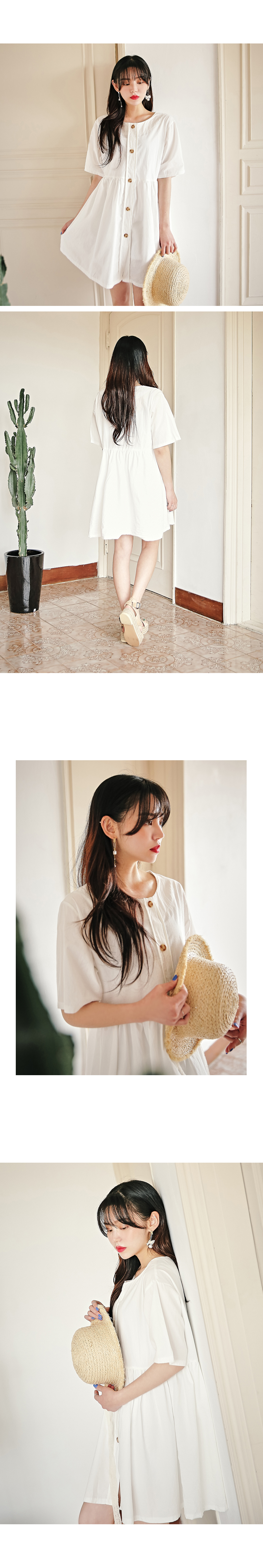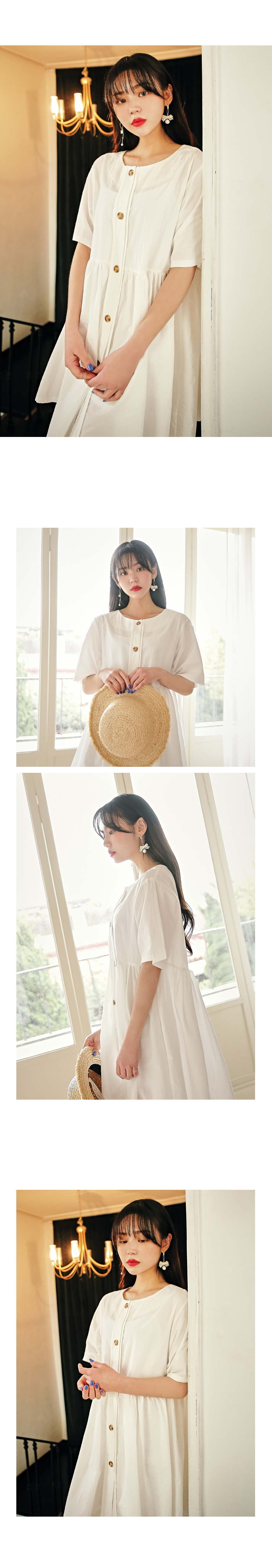 깔끔한 라운드 네크라인에 버튼 디테일이 더해