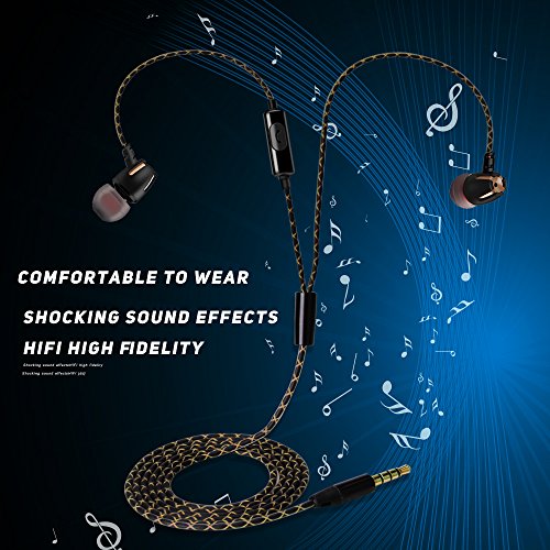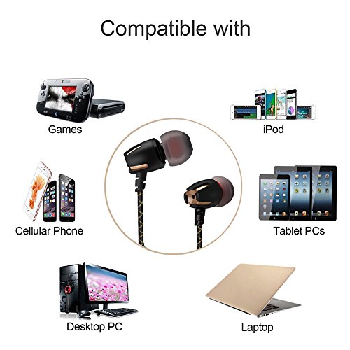 Wired Earbuds, Bluenin Corded Earphone Stereo Bass Noise Cancelling In-ear Wired Control Headset with Built-in Microphone for All 3.5mm Interface Device (Gold)