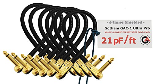 6 Units - Gotham GAC-1 Ultra Pro - 12 Inch - Low-Capacitance (21pF/ft) Guitar Bass Effects Instrument, Patch Cable with Gold Plated ¼ Inch (6.35mm) Low-Profile, Right Angled Pancake type Connectors