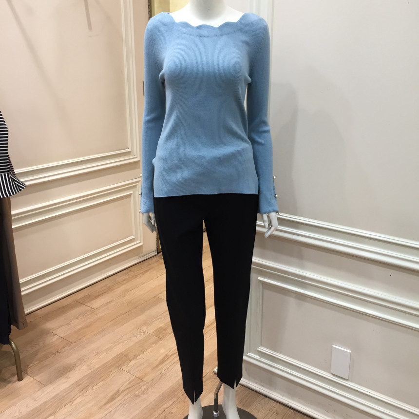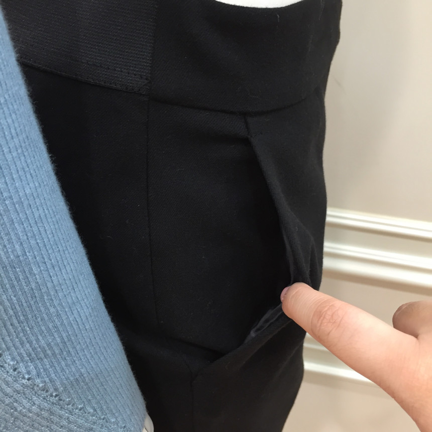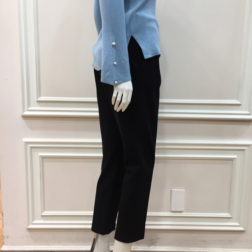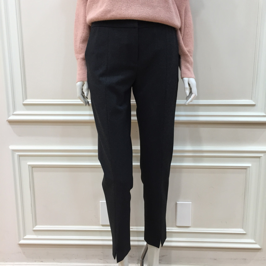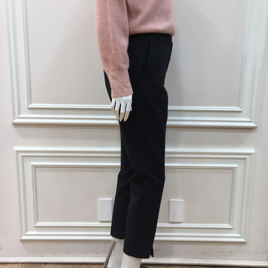베이직한 디자인의 일자로 깔끔하게 떨어지고 앞 밑단에 슬릿 디테일을 주었습니다.