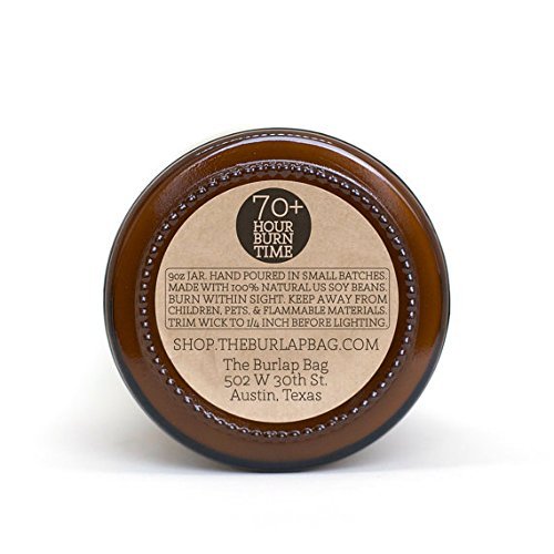 Comes in a 9oz amber glass jar with a black metal lid. Has a 70+ hour burn time and are made from all natural US soy beans.