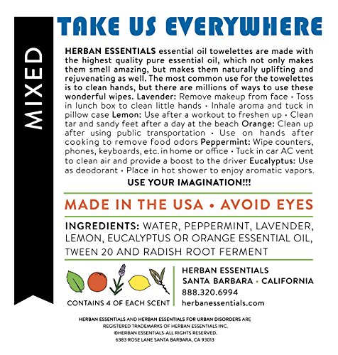 Herban Essentials Assorted Bag (all 5 scents): Lemon, Lavender, Peppermint, Orange and Eucalyptus (20 towelettes)