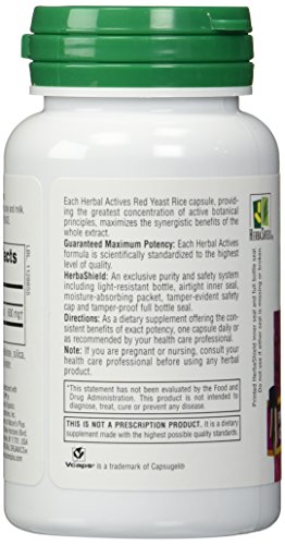 -. Binding : Health and Beauty -. Brand : Nature's Plus -. Color : red -. EAN : 0097467072466 -. Feature : Nature's Plus -. IsAdultProduct : 0 -. Label : Nature's Plus -. LegalDisclaimer : * These statements have not been evaluated by the Food and Drug Administration. This product is not intended to diagnose, treat, cure or prevent any disease. **Always refer to the manufacturer's label on the product for description, recommended dose and precautions. -. Manufacturer : Nature's Plus -. Model : 097467072466 -. MPN : 979 -. NumberOfItems : 1 -. PackageQuantity : 1 -. PartNumber : 979 -. ProductGroup : Health and Beauty -. ProductTypeName : DIETARY_SUPPLEMENTS -. Publisher : Nature's Plus -. Size : 60 -. Studio : Nature's Plus -. Title : Nature's Plus - Herbal Actives Red Yeast Rice 600 mg Vcaps, 60 count -. UPC : 097467072466