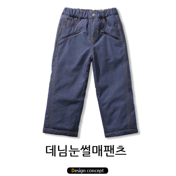 데님느낌의 화섬원단을 사용한 눈썰매 팬츠입니다.