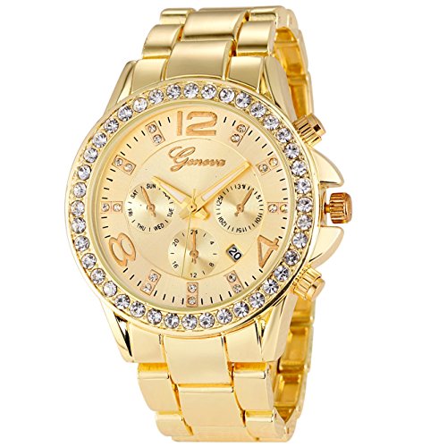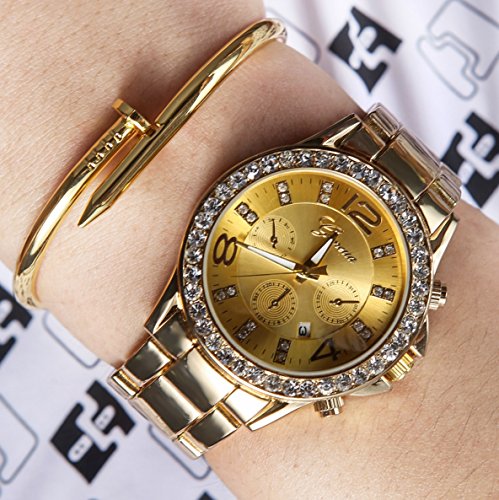 -. Title : New Brand Mall Women's Geneva Luxury Alloy Analog Quartz Golden Watch