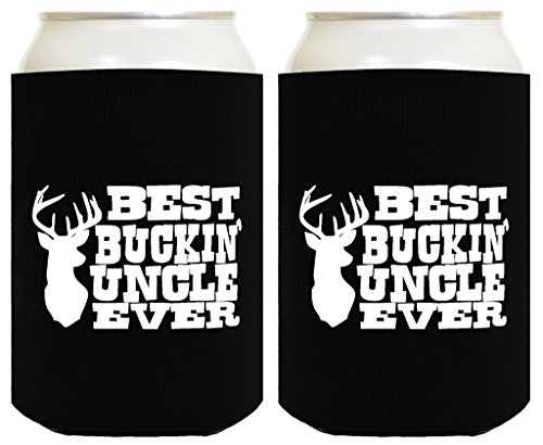 Funny Beer Coolie Best Buckin' Uncle Ever Father's Day Gift for Uncle 2 Pack Can Coolie Drink Coolers Coolies Black