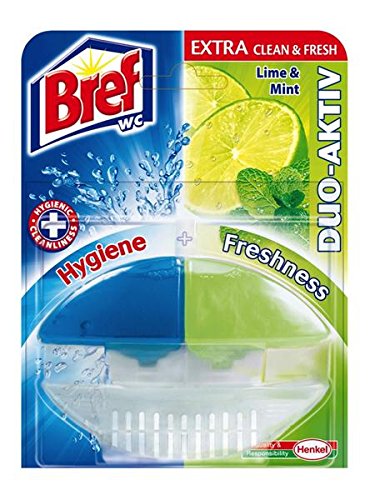 -. Binding : Home -. Brand : Henkel -. EAN : 9000100303675 -. Feature : Provides hygienic cleanliness and a pleasing fragarance. Prevents future soiling / Unique dual-chamber design. Cleaning agent and fragrance are concentrated in separate chambers / Easy to use - hang on toilet rim / Environmentally friendly - does not pollute water / Infusion of refreshing Lime and Mint fragrance -. Label : Henkel -. Manufacturer : Henkel -. ProductGroup : Home -. ProductTypeName : HOME -. Publisher : Henkel -. Studio : Henkel -. Title : Bref Duo Active by Henkel - Automatic Toilet Cleaning Gel - Lime & Mint - 4 Count