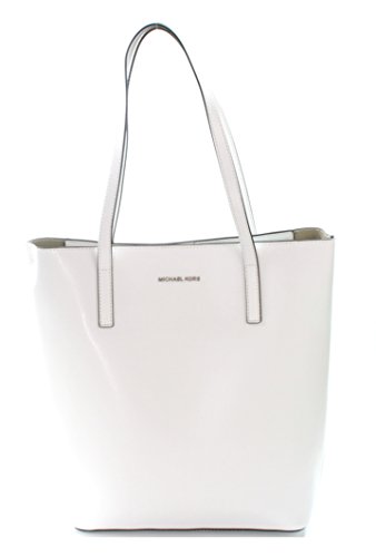-. Title : MICHAEL Emry Large North South Leather Tote in Optic White