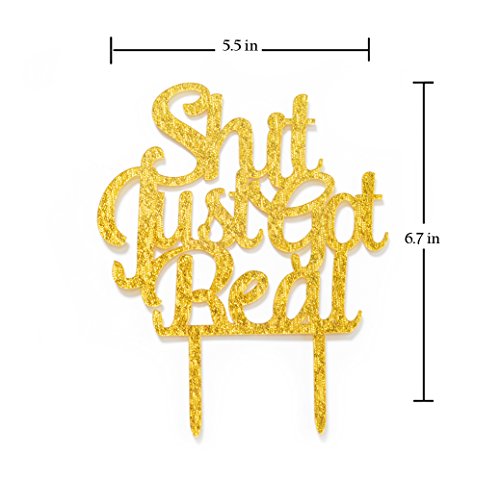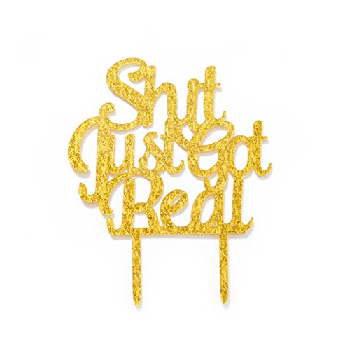 Qttier Shit Just Got Real Cake Topper, Engagement/ Wedding/Bachelorette/Pregnancy Announcement Cake Topper (Gold)