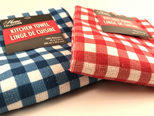 Blue and Red Microfiber Kitchen Towels, 100% Polyester, 2 Pack