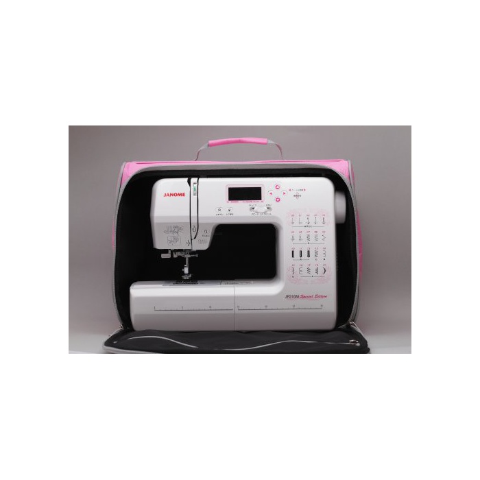 JP210MSE는,어쨌든 예쁜과 친절 설계 를 고집했습니다.JP210MSE한정,기다려 바늘이 미싱 본체에 찌를 수 있는 오리지날 핑크《숀》와 먼지의 침입을 막는 세련된 미싱 수납 가방을 이번 표준 장비.