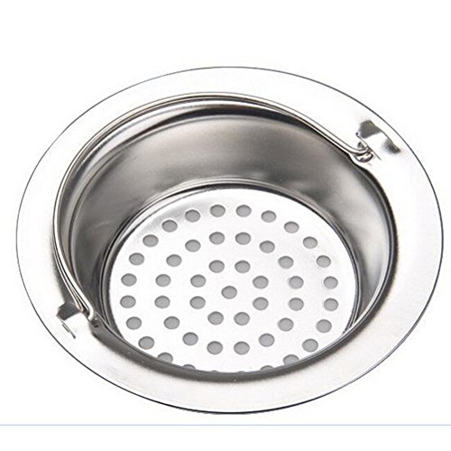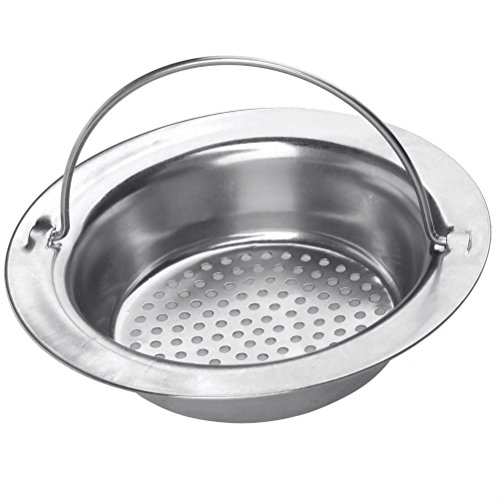 This sink drain strainer lets water pass through but not food particles, and has a handle to allow for easy removal from the sink