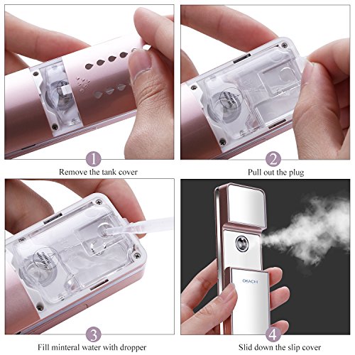 OKACHI GLIYA Handy Nano Face Mist Spray Facial steamer for Hydrating, Eyelash Extension with Makeup Mirror USB Rechargeable Gift Package