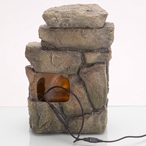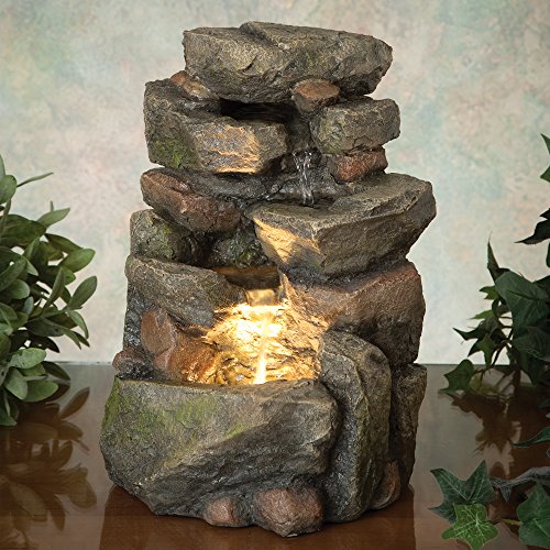 Bits and Pieces - 11.25 Inch Indoor Tiered Rock Fountain with LED - Zen Tabletop Water Fountain - Illuminated Relaxation Fountain