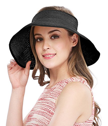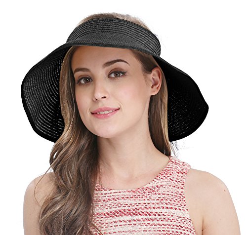 | Women Straw Hat Roll up Wide Brim Sun Visor Foldable Summer Beach Hat |