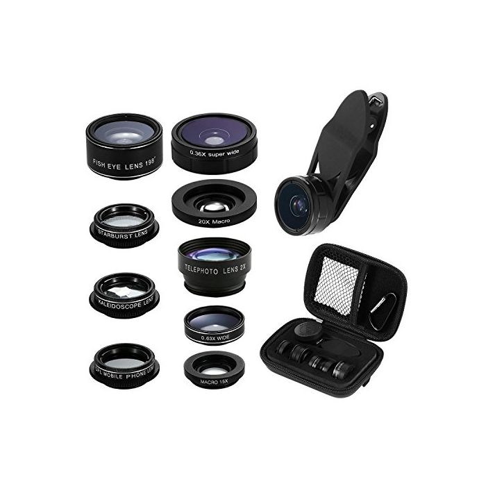 9in1 고품질 스마트 폰용 카메라 렌즈 Knguvth정규품 줌렌즈 키트 2X망원 렌즈 198°어안렌즈 0.36X초 광각 렌즈 0.63x와이드 렌즈 매크로 렌즈20 x 15X
