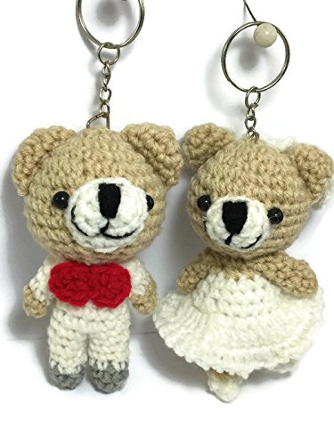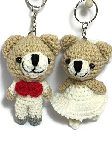2 pc Cute Bear Yarn Doll handmade Keyring Voodoo Doll Wedding couple Keychain Craft valentine Gift
