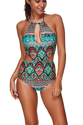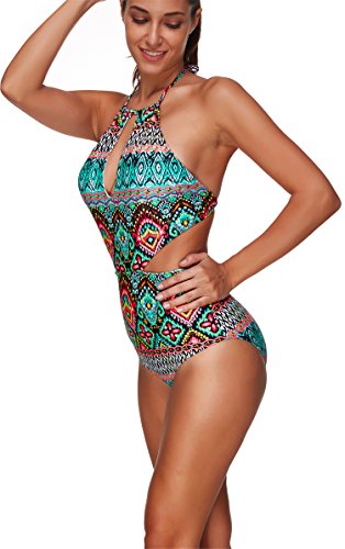 Feature : Hand wash cold separately, only non-chlorine bleach when needed, do not iron,do not dry clean,do not wring or twist line dry , for best results, rinse and line dry immediately after use / GORHEOUS And ADORABLE: The retro style is a sexy cut, vibrant,Boy-Leg. The print is fabulous and the Lined in plaid. The necktie is the perfect length.The unique design make you look young, sexy and active, help you catch more eyes. / RETRO STYLE: Unique 50s Retro(Vintage) halter classic shape bathing swimsuit. Ties at neck and across the back, removable halter and straps. Double Layer, Scrunch design of bottom helps lift and contour your shape, giving you a nice curve to look good. / Lightweight and stretch fabric offers durability and superior comfort, chlorine-resistant fabric helps retain shape and prevents fading / Athletic one piece bathing suits features scoolp neckline, racerback design, pullover style, over the shoulder strap, removable padding, boyleg