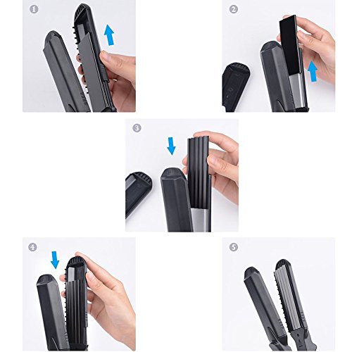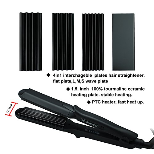 More Options This version of flat iron is interchangeable. There are total four different ceramics plate, different size can make different hair style.
