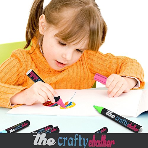 The Crafty Chalker,10 Premium Chalk Markers ,Best for Art and Craft,8 Neon Liquid Colors + Black & White Pens,Blackboard Marker for Office Bistro Classroom, Erasable non-toxic Marker 100% Guarantee..