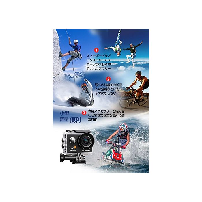 원본상품명: SOFER(ソフェル) アクションカメラ タッチパネル搭載 タッチして簡操作 4K高質 30M防水 Wi-Fi機能搭載 2インチ液晶面 170度角レンズ HDMI出力可能 多言語 ハルメッ
