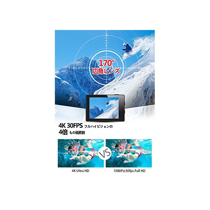 【터치 패널 탑재4K Ultra HD고화질170도 광각 렌즈 】터치 스크린,터치 해 간단하게 조작으로 옵니다.4K Ultra HD고화질,보다 아름답고 매끄러운 동영상 영상이 찍힙니다.170도 광각 렌즈가 탑재되고, 광범위하고 촬영 하는 것 를 할 수 있습니다.2인치 액정 화면 찍은 영상이 곧바로 보고 있습니다.경량 또한 컴팩트한 바디에,보다 자유롭게 제휴나 장착해 사용 하실 수 있습니다.