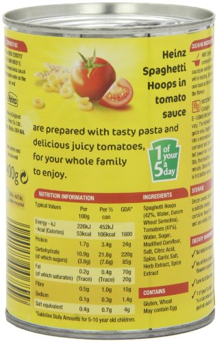 -. Title : Heinz Spaghetti Hoops in Tomato Sauce Large Size 400g