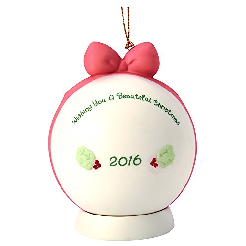 -. Title : Precious Moments, Christmas Gifts, "Wishing You A Beautiful Christmas", Dated 2016, Bisque Porcelain Ball Ornament, #161003